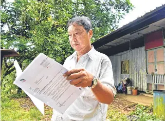 Mr Ong Kim Cheng reading the NParks' Temporary Occupational Licence agreement outside his house. The taxi driver who was born on Pulau Ubin continues to live alone in the house built by his late parents. Photo coutesy of ST, Chong Jun Liang